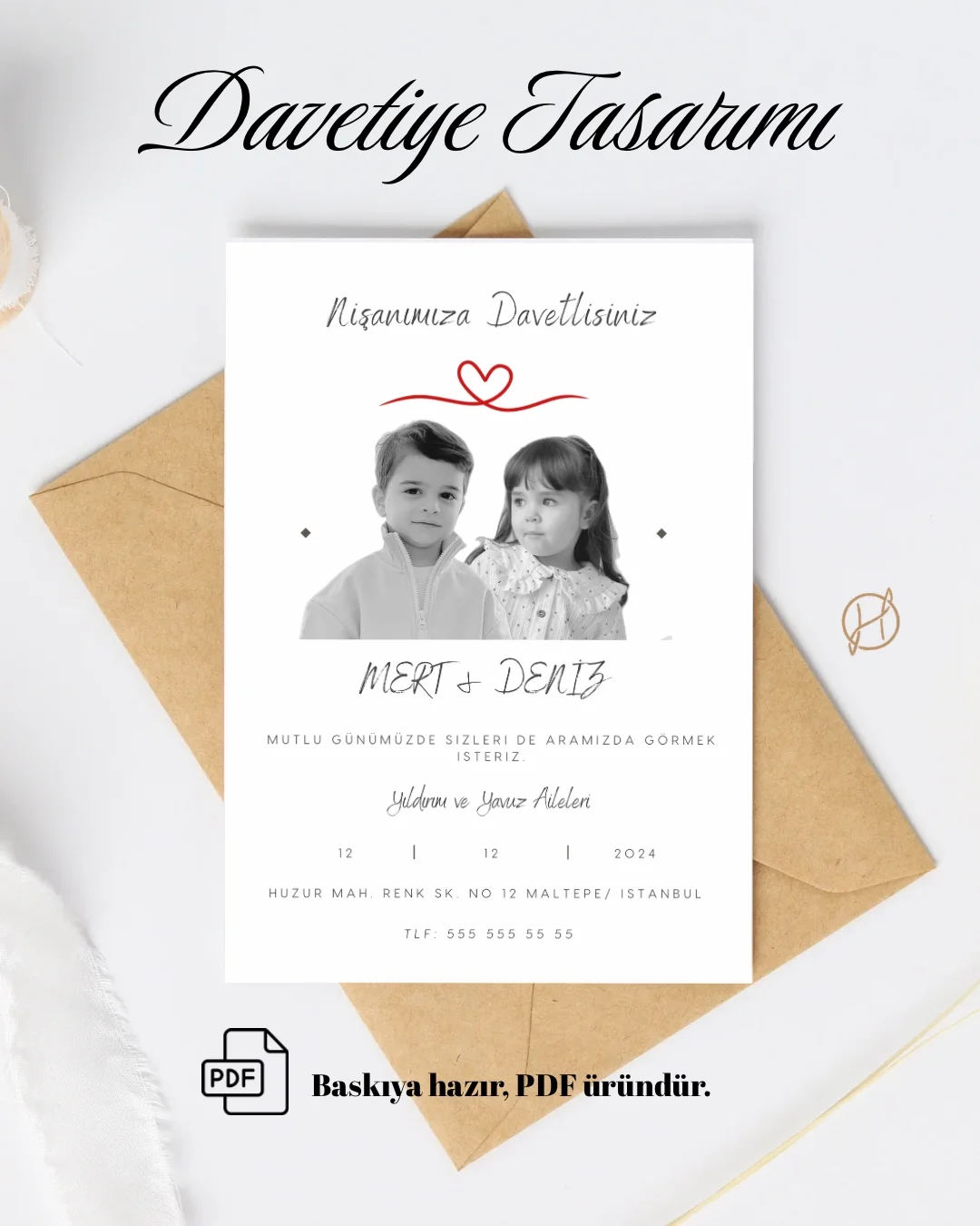 Düğün veya nişanınız için sıradanlıktan uzak, tamamen size özel bir davetiye mi arıyorsunuz? Çocukluk fotoğraflı dijital davetiye ürünümüzle en tatlı anılarınızı davetlilerinizle paylaşın. Hikayenizi anlatan bu eşsiz tasarım, sevdiğinizle tanıştığınız günden bugüne uzanan aşk yolculuğunuzu davetlilerinize duyurmanın en duygusal yolu.